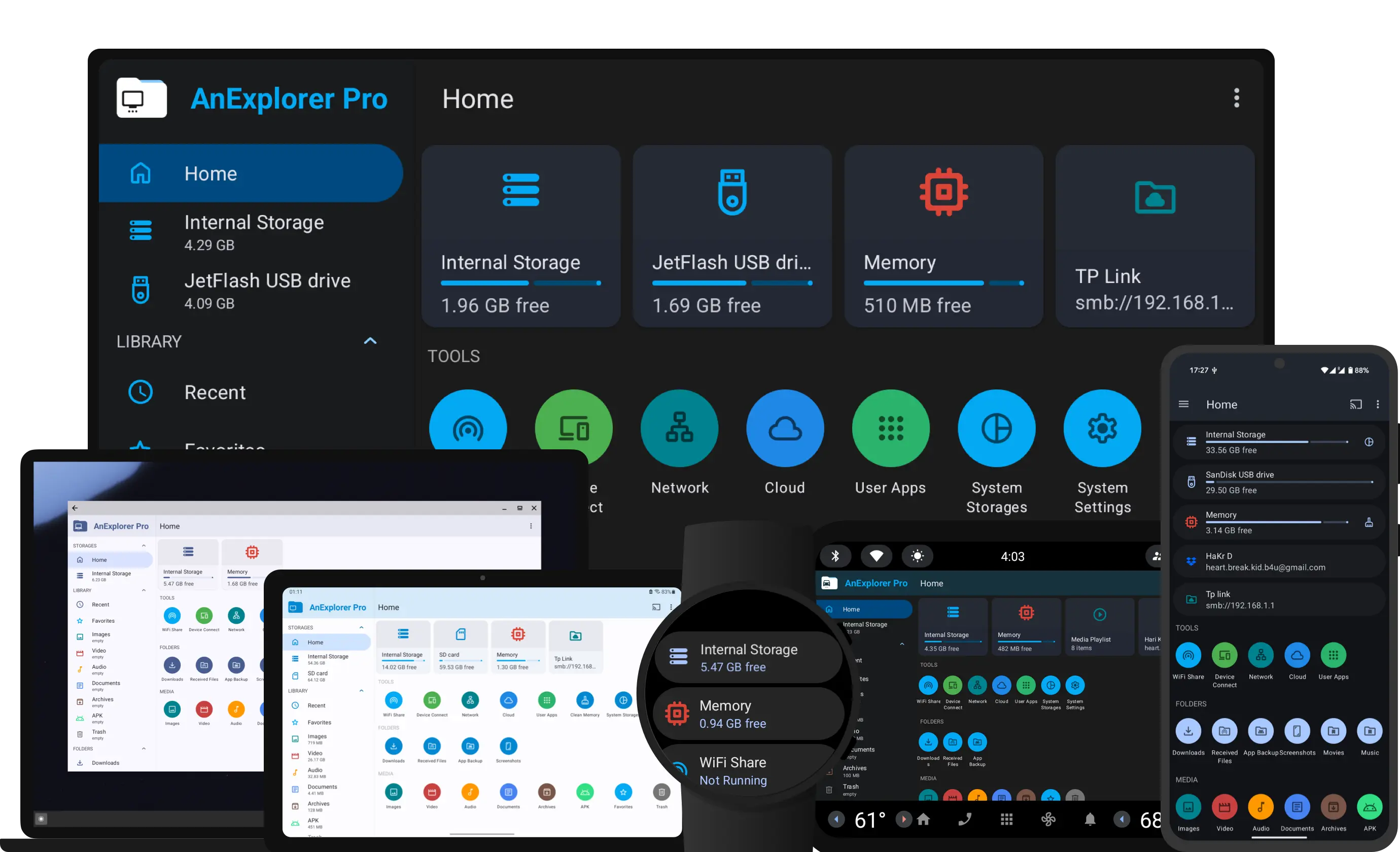 - Manage images, videos, music, documents, archives, and APK files with ease